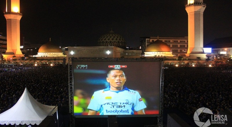 Ribuan Bobotoh memadati alun-alun Bandung saat menyaksikan…