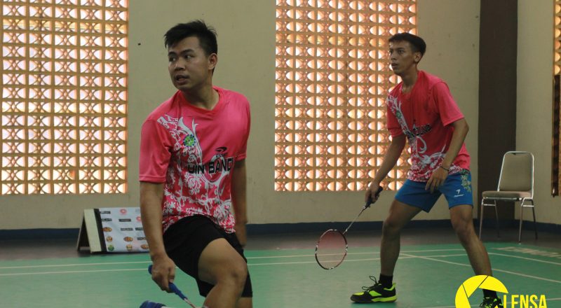 Pasangan ganda putra Riyan dan Revin bertanding melawan…