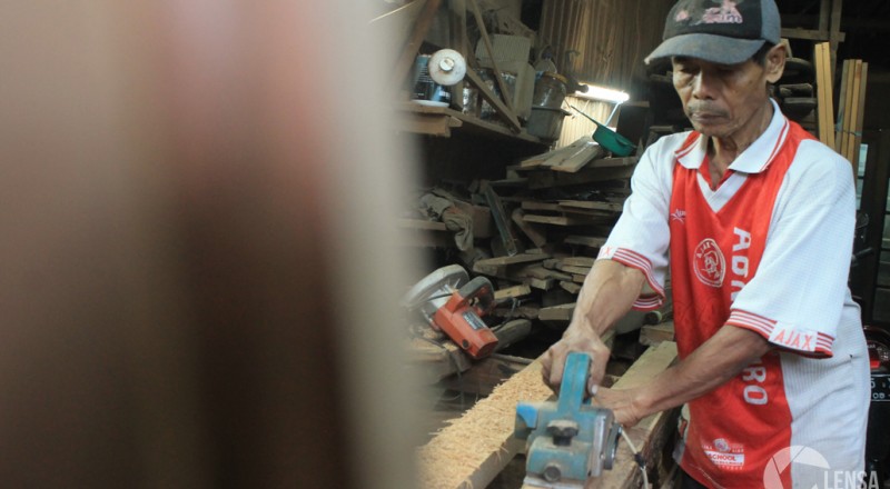 Anang (75) sedang membuat pintu dari kayu di jalan…