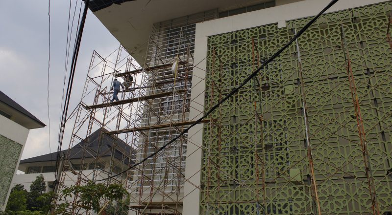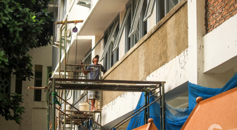 Pekerja mengecek jendela yang baru di pasang di Lantai 2…