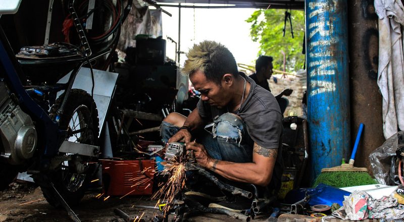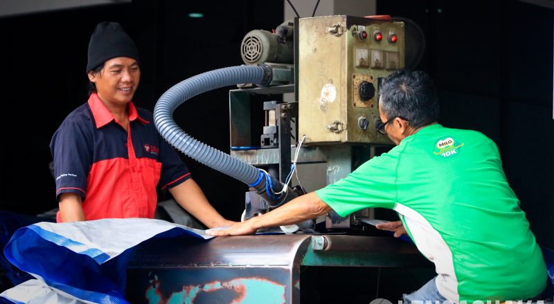 Agus (42) dan Rasyid (58), Membuat Terpal di toko miliknya di…