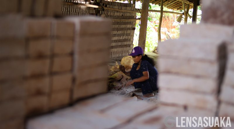 Ibat Supriyatna (30) membuat kain kanvas yang merupakan bahan…