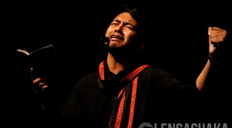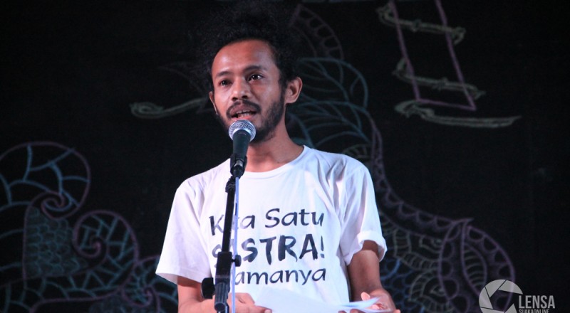 Mahasiswa membaca puisi Nyeri Aceh dalam rangkaian Malam…