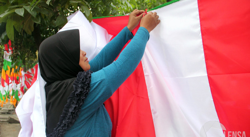 Ani (36) menjual Bendera Merah Putih di sekitar Jalan AH…