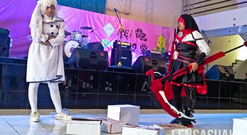 Dua Cosplayer memainkan peran sebagai Ruby (kanan) dan Weiss…