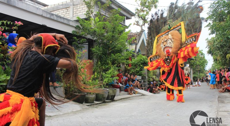 Pemeran Nyi Rangda mengancam warga desa dalam pementasan…