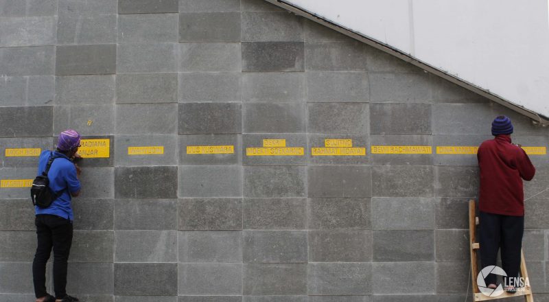 Sejumlah pekerja memahat nama-nama tenaga kesehatan yang gugur…
