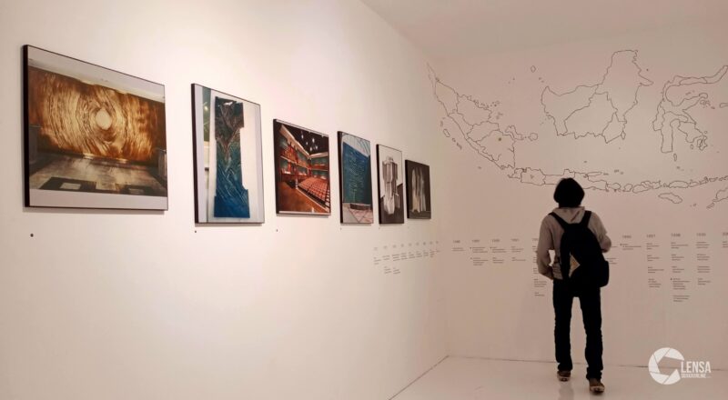 Pengunjung Pameran Rangkai Aksara mengabadikan salah satu…